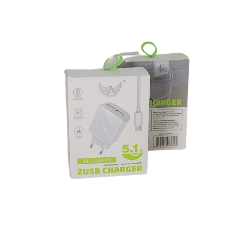 Carregador de parede Turbo ALtomex 5.1A 2 USB com cabo Micro USB V8, AL-9058-V8